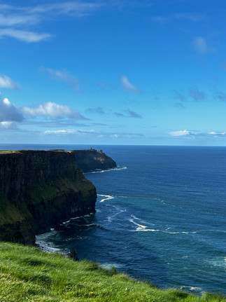 Amanecimos bien temprano en Limerick para recorrer los 80 km que nos separaban de uno de los lugares más esperados del viaje: los Acantilados de Moher. Ubicados en la costa oeste de Irlanda, estos imponentes acantilados se elevan hasta 214 metros sobre el océano Atlántico y se extienden a lo largo de 8 km regalando un paisaje que quita el aliento.