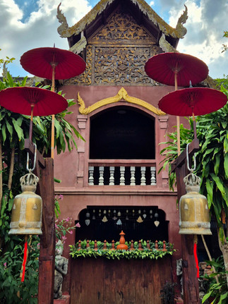 Para llegar al templo hay que subir una escalera de más de 300 escalones, flanqueada por nagas (serpientes mitológicas). Su chedi dorada, rodeada de campanas y ofrendas, es uno de los símbolos más reconocibles de Chiang Mai.