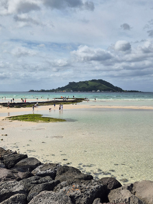 Una de las playas más populares y accesibles de Jeju, ubicada a solo 15 km de Jeju City. Sus aguas poco profundas y tranquilas la hacen ideal para familias y quienes buscan nadar sin oleaje fuerte. La playa está rodeada de cafés y restaurantes, además de un puente que conecta con un islote desde donde se obtienen lindas vistas.