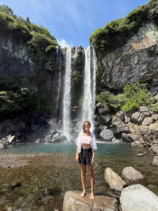 Sumergir los pies en el agua helada mientras mirábamos la imponente caída fue nuestra primera toma de contacto con todo lo que Jeju tenía para ofrecernos: naturaleza, fuerza y serenidad al mismo tiempo.