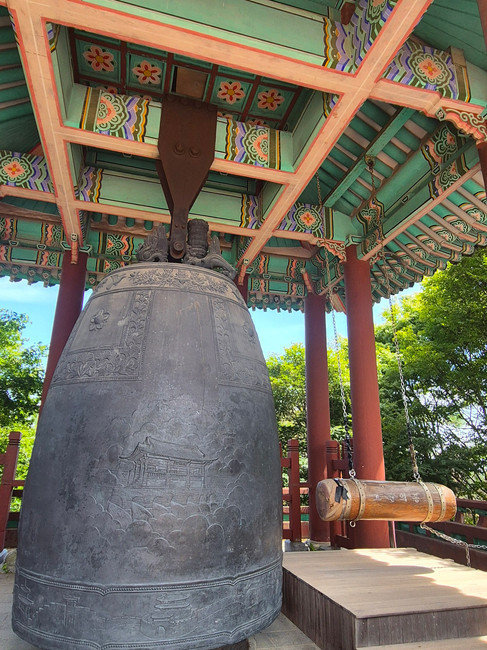 Continuando la subida por la fortaleza, nos encontramos con la Campana de Hyowon, uno de los elementos más destacados dentro del complejo. Esta campana, que data de la época de la dinastía Joseon, se utilizaba tradicionalmente para marcar horarios y alertar a los habitantes en caso de emergencias.