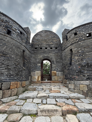 Continuando la subida por la fortaleza hasta la parte superior de la montaña, llegamos a Seomun, una de las cinco puertas secretas de la Fortaleza Hwaseong. Esta puerta, ubicada en el suroeste, da acceso a un pequeño camino exterior que conecta con un pabellón de vigilancia donde los soldados realizaban sus guardias.